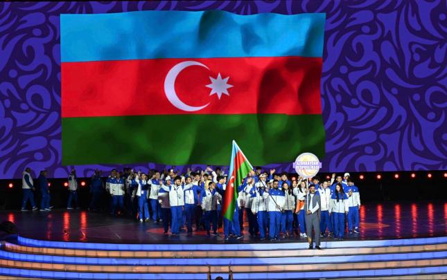 Əvvəlcə Azərbaycan Respublikasının üçrəngli Bayrağı arenaya gətirilib və Dövlət Himnimizin sədaları altında ucaldılıb.