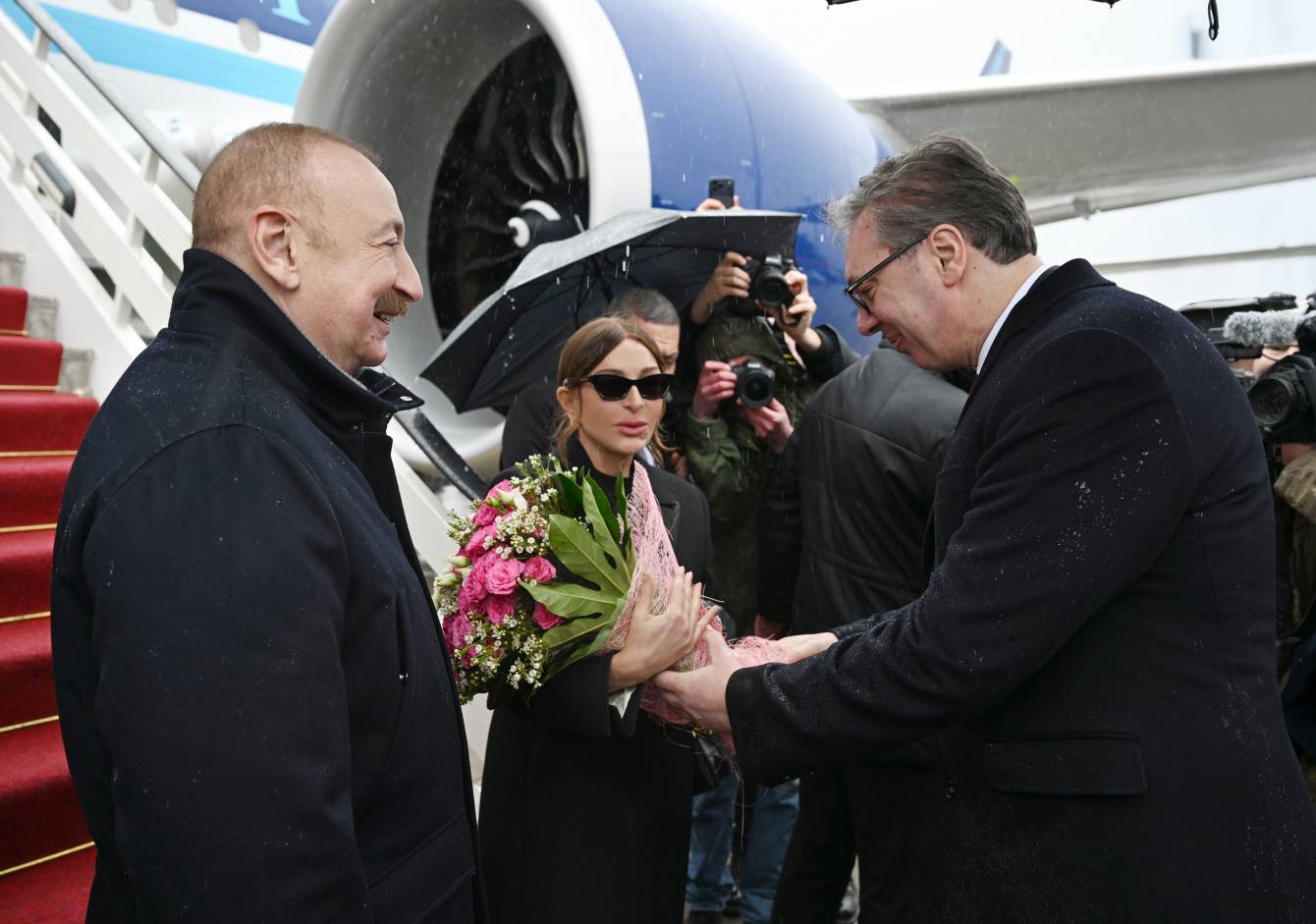 Prezident İlham Əliyevi və birinci xanım Mehriban Əliyevanı Serbiya Respublikasının Prezidenti Aleksandar Vuçiç qarşıladı.