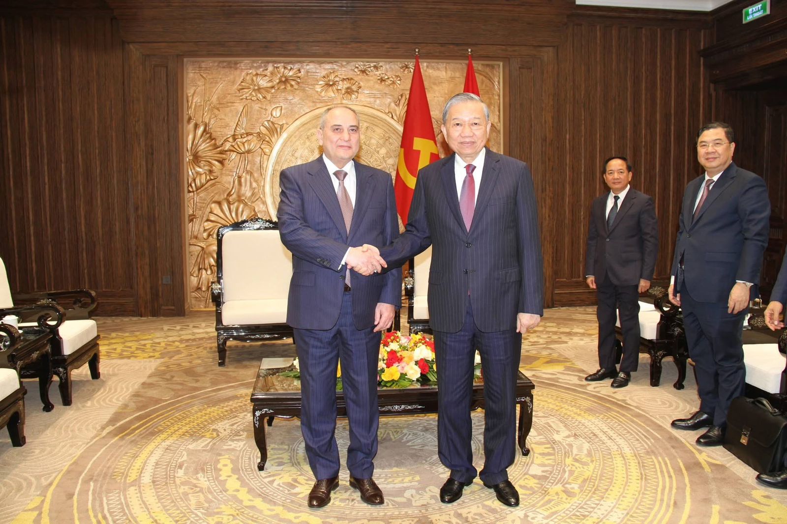 Baş katib To Lam ötən ilin may ayında ölkəmizə səfərini xatırladıb və Azərbaycan Respublikasının Prezidenti, Yeni Azərbaycan Partiyasının Sədri İlham Əliyevi də Vyetnamda səbirsizliklə gözlədiklərini deyib. O, strateji tərəfdaşlığın qurulması haqqında Birgə Bəyanatın qəbul olunması ilə Azərbaycan-Vyetnam münasibətlərinin yeni inkişaf mərhələsinə yüksəldiyini deyib.
